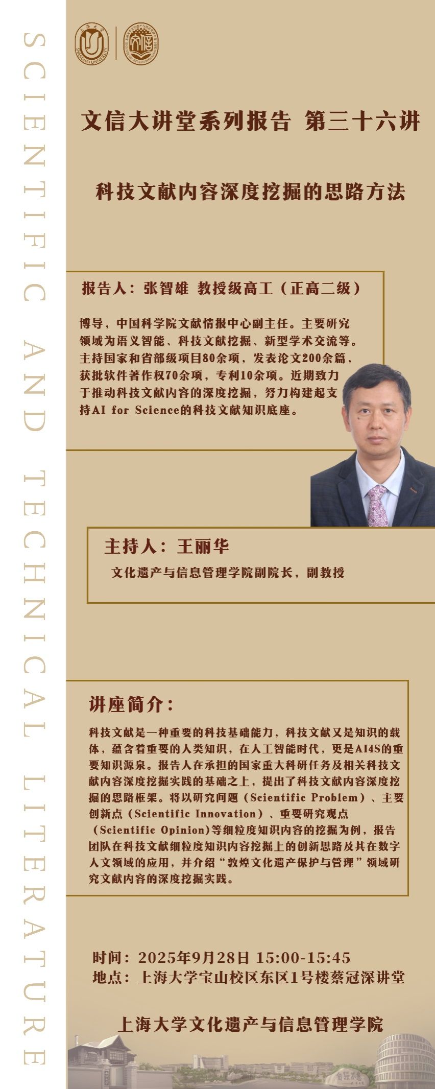 科技文献是一种重要的科技基础能力,科技文献又是知识的载体,蕴含着重要的人类知识,在人工智能时代,更是AI4S的重要知识源泉。本期活动特别邀请到中国科学院文献情报中心副主任张智雄教授,与我们共同探讨“科技文献内容深度挖掘的思路方法”。本次分享聚焦在科技文献细粒度知识内容挖掘上的创新思路及其在数字人文领域的应用,并介绍“敦煌文化遗产保护与管理”领域研究文献内容的深度挖掘实践。